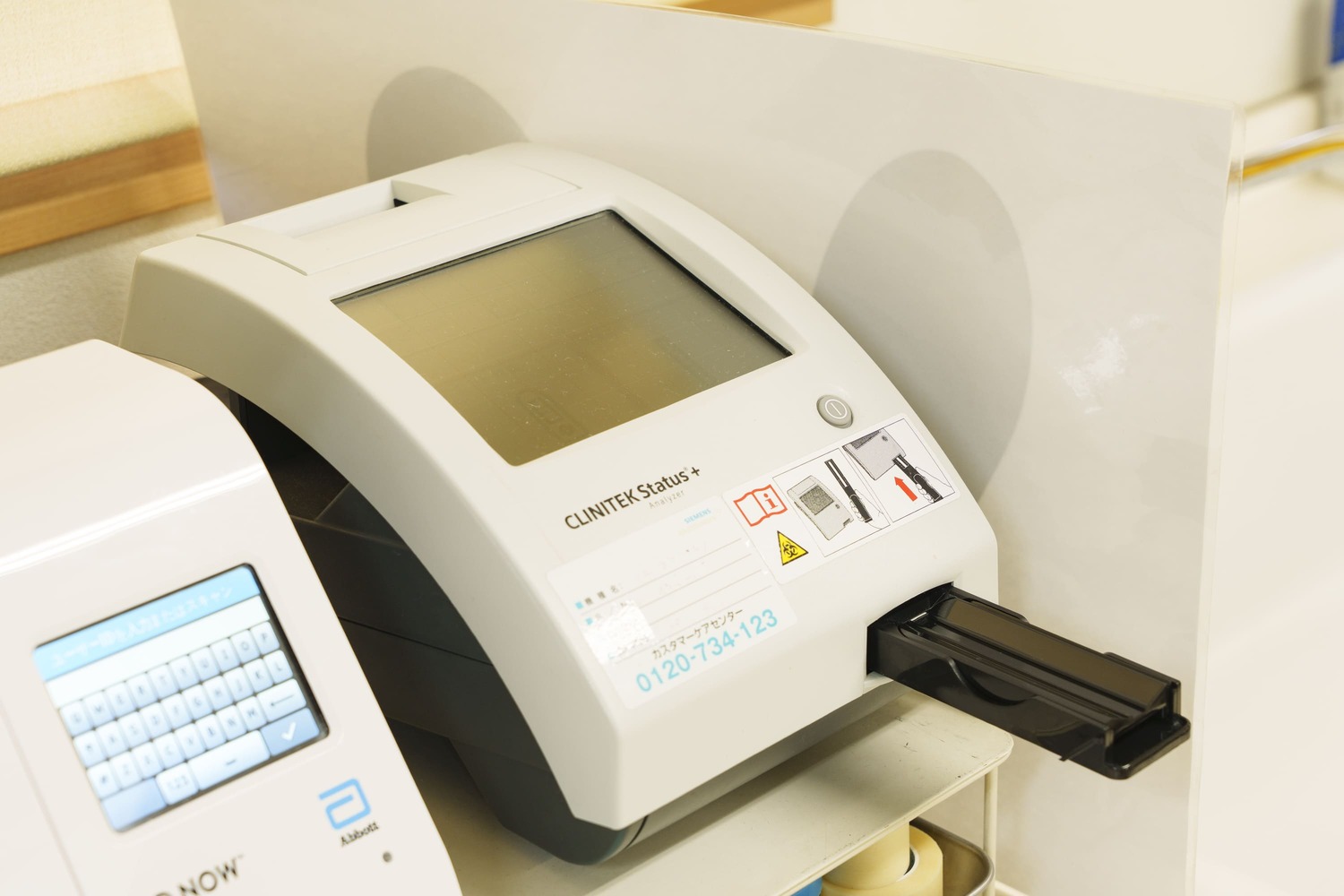 尿路感染症や血尿、タンパク尿、糖尿等を小型尿分析器で調べます。学校検尿で異常があった場合の再検査もしています。